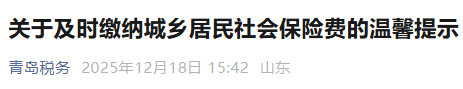 2026年度居民基本养老保险和居民社会医疗保险集中缴费期将于2025年12月31日截止,请尚未缴费的参保居民按照税务部门提供的各种渠道及时缴费,以确保社保、医保待遇的正常享受。