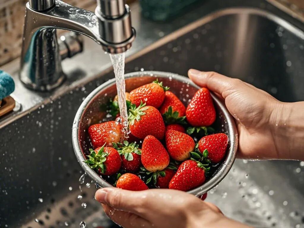 很多人洗草莓先摘蒂,研究人员通过实验发现:摘掉蒂再浸泡,农残反而更高!