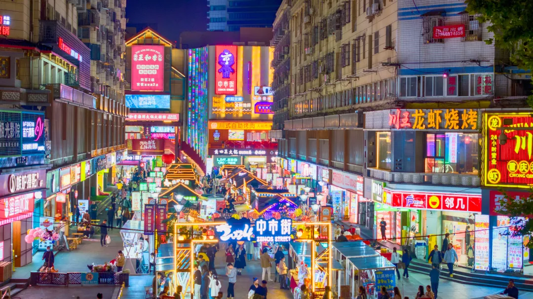 合肥市庐阳区淮河路步行街一带夜市人潮涌动,市民正在逛街购物、品尝美食。安徽图片网 赵明 摄(资料图)