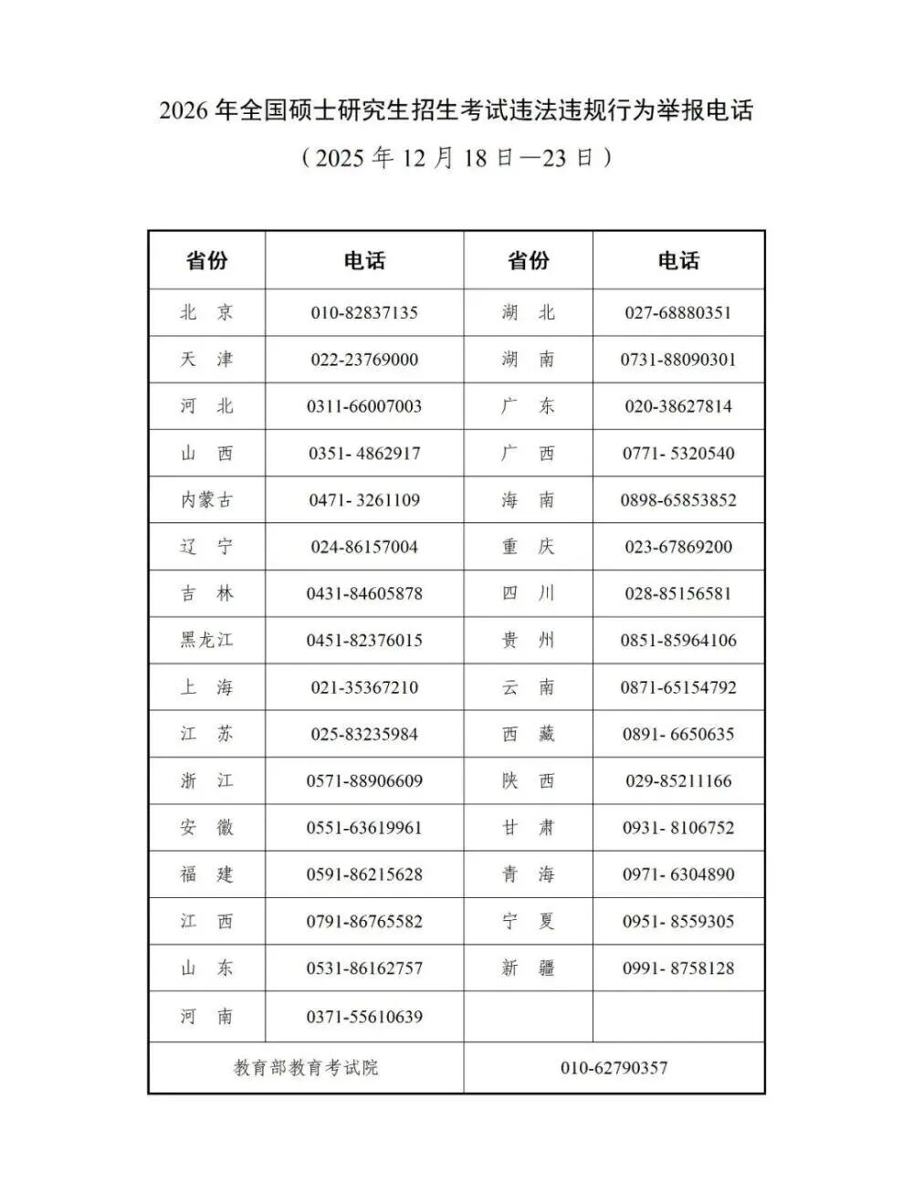 考生应认真阅读《云南省2026年硕士研究生招生考试(初试)考场规则》(附件4),遵守考场规则,服从考试工作人员管理。如不遵守相关规定,有违规行为,将根据《国家教育考试违规处理办法》予以处理,记入国家教育考试诚信档案。考试过程中,考生如携带手机等具有发送或接收信息功能的设备,无论使用与否一律视为作弊,将取消所有科目考试成绩,涉嫌犯罪的,将按照《中华人民共和国刑法修正案(九)》《最高人民法院、最高人民检察院关于办理组织考试作弊等刑事案件适用法律若干问题的解释》追究刑事责任。