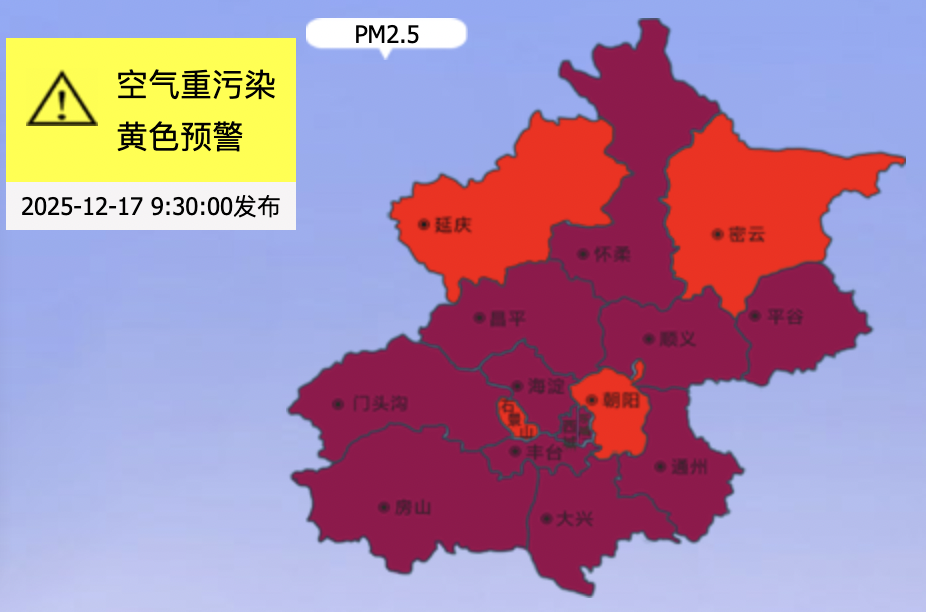 北京的情况也有些特殊。据气象部门统计,今年10月至11月初,北京平均风速仅有1.4米每秒,以弱风为主。清晨时段频繁出现逆温现象,平均相对湿度71%、较近五年同期平均偏高8%,出现大雾天数3天。而这两天,北京风力弱,夜间至早晨有逆温,低层湿度大,最大相对湿度恨不得能达到90%。大气扩散条件较差,容易造成污染物累积、转化,诱发污染过程。