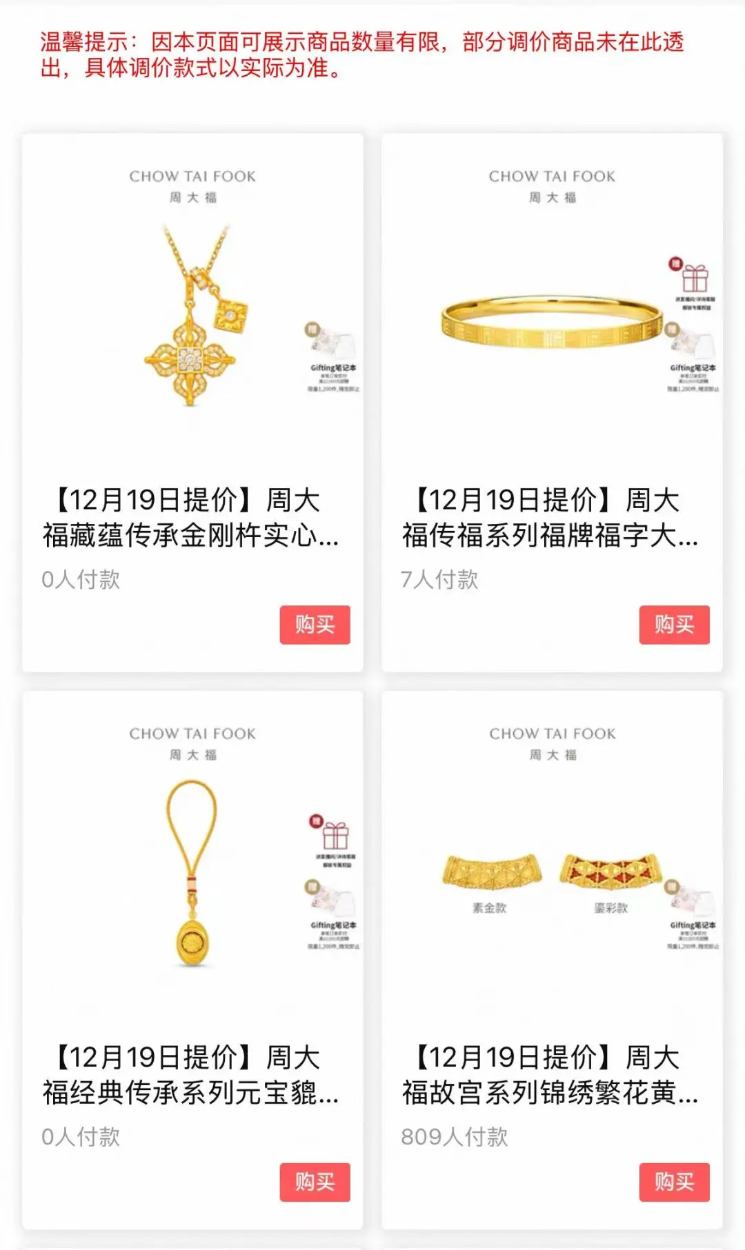 周大福今年于3月和10月底进行了两次调价,加上本次,年内累计已涨价三次。