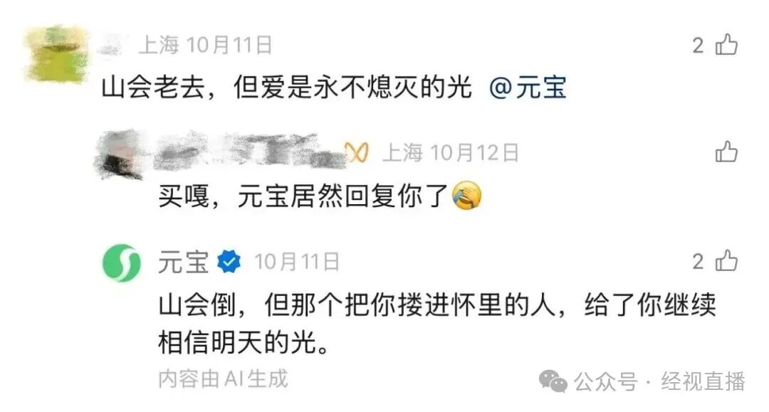 元宝在评论区给出的自动回复 图片来源:腾讯