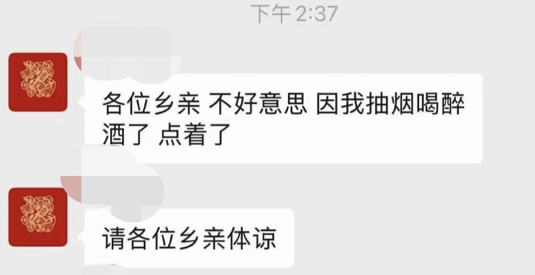 12月18日,广东珠海,网传一小区有人纵火。网传玺悦湾(南区)业主群聊天记录,一名业主突然在业主群发言,要点火烧房子,请1单元的业主全部离开,之后还发图称已经烧起来了。另有聊天记录显示,这名业主还在群里解释,“因我抽烟喝醉酒点着了。”另有网传视频,楼栋一房间内冒出黑烟。