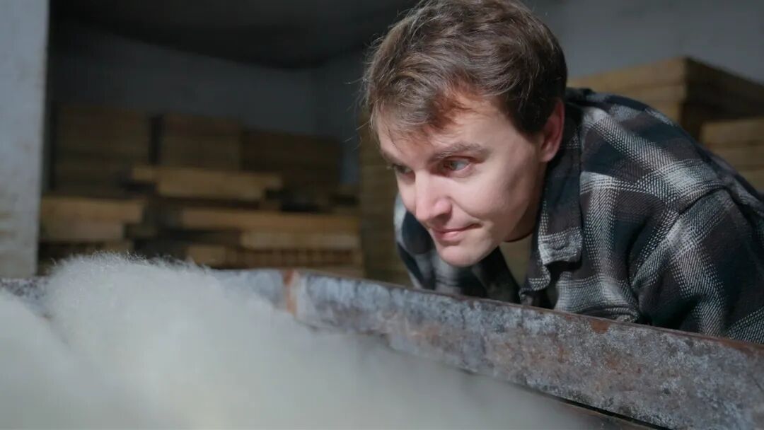 卓文仔细观察着菌丝丰茂的毛豆腐。王浩 摄
