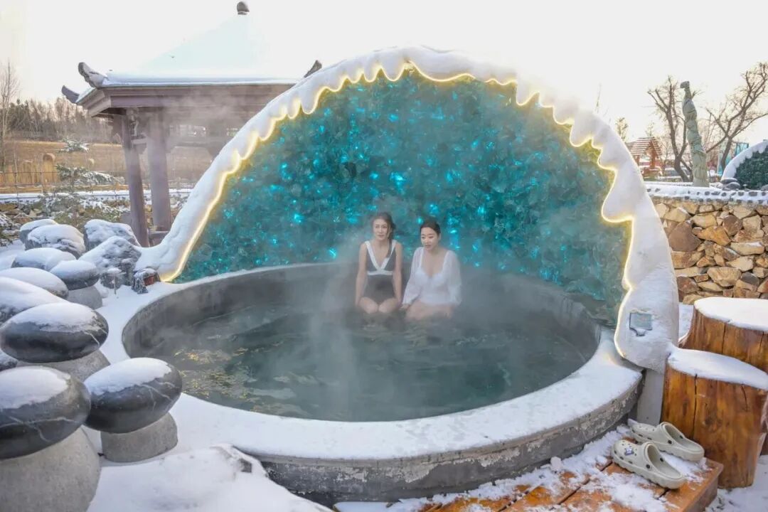 游客入住天定山民宿主题院落,可以在户外泡着40℃恒温温泉,“冰火两重天”的体验直接封神~