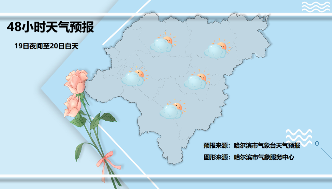 18日夜间至19日白天:18日夜间尚志、五常以多云为主,其他区域阴有小雪,19日白天全市阴有雨夹雪或湿雪,木兰、通河、依兰可达中雪;偏南风3~4级,阵风5~7级;最低气温东部、北部区域-12~-9℃,其他区域-8~-5℃,最高气温2~4℃。