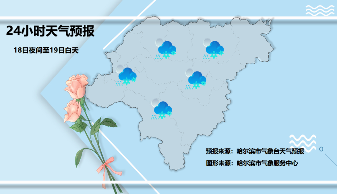 哈尔滨市气象台2025年12月18日发布18日夜间到21日白天全市天气预报: