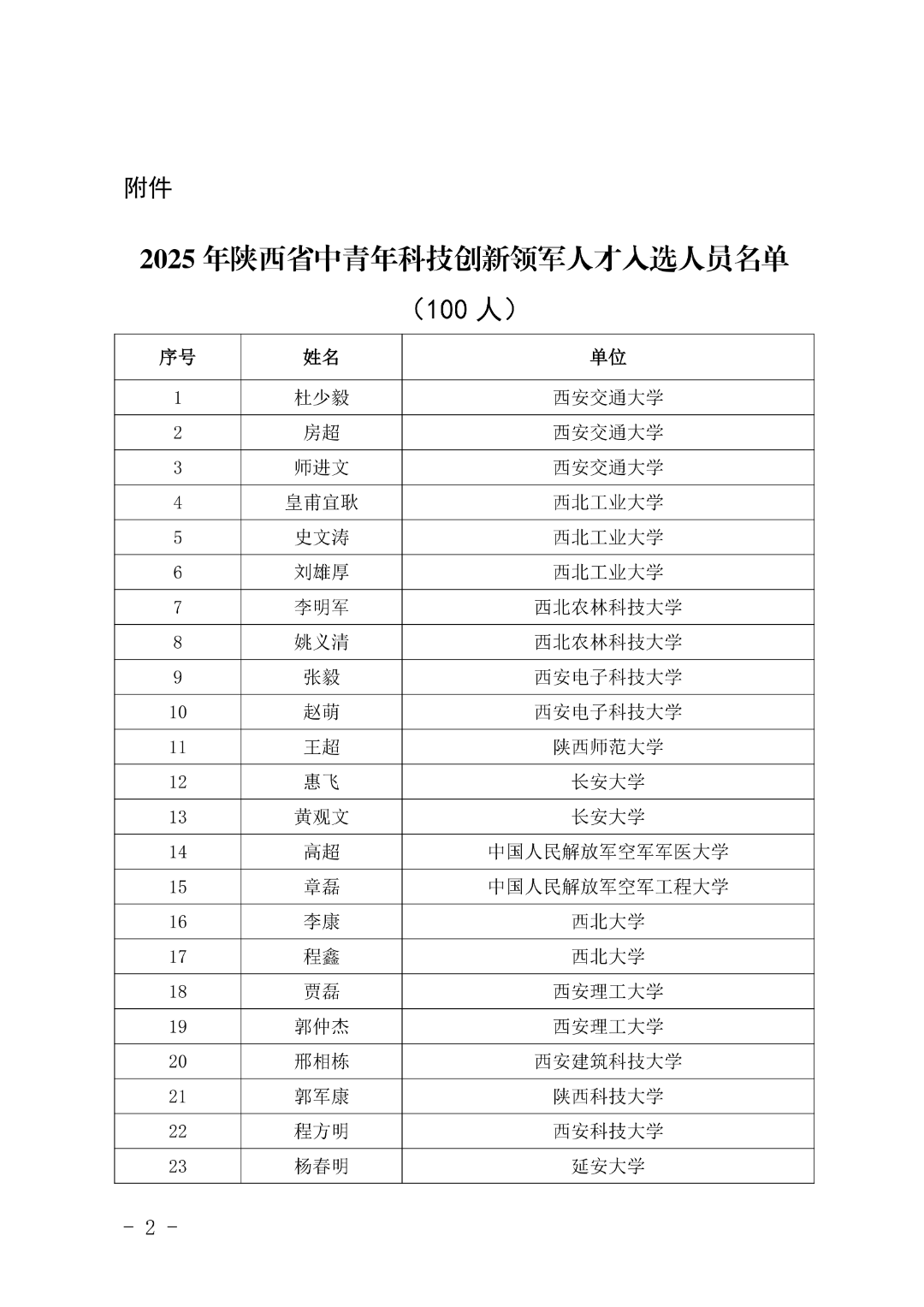 12月16日,据陕西省科技厅消息,2025年陕西省中青年科技创新领军人才、科技创新创业人才及2026年青年科技新星入选人员公布。