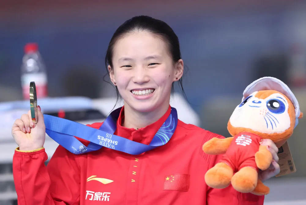 7月31日,陈芋汐在颁奖仪式后。新华社记者 雒圆 摄