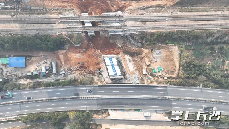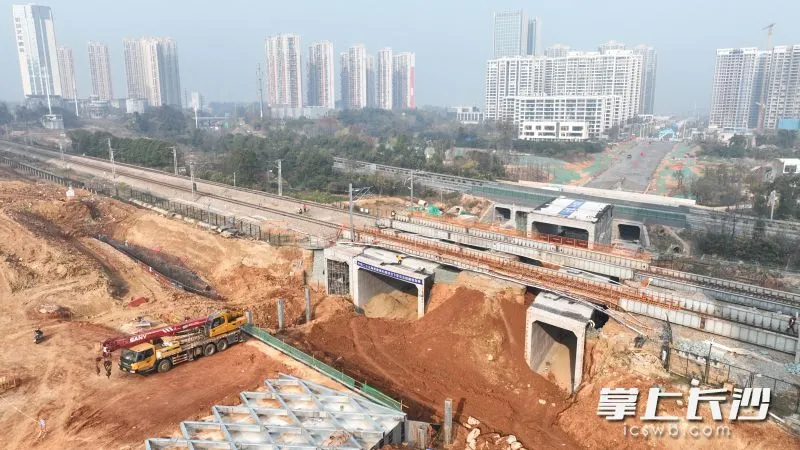 石长铁路线上,一列火车呼啸驶过;铁轨下方,3个钢筋混凝土箱涵已精准对接成型,几名工人正在附近工地上忙碌。这是记者12月18日在项目施工现场看到的一幕。而在记者看不到的地方——工人们脚下的路基深处,则是地铁4号线的延长线施工场地。