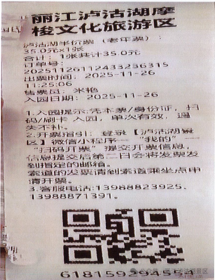 景区纸质门票的停用是服务升级的重要举措,如给您带来不便,敬请谅解。感谢广大游客的理解与支持,欢迎体验更加便捷的泸沽湖之旅!