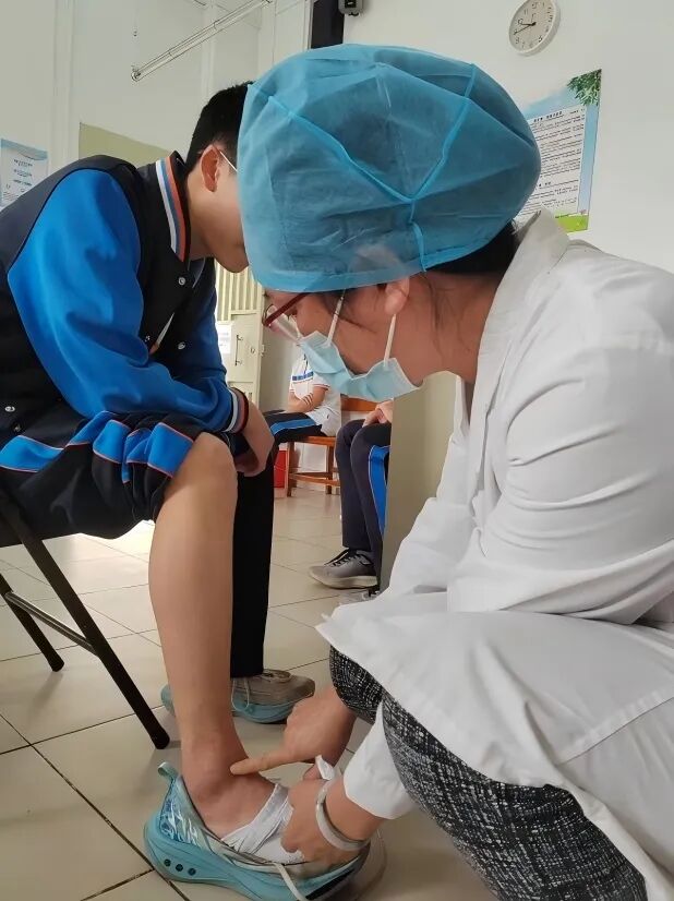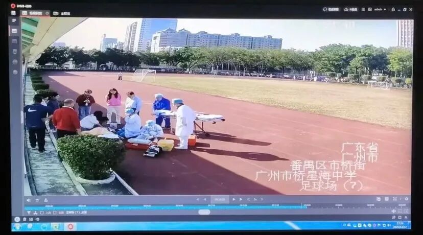 时间回溯到11月26日上午,当天课间操时间,一名同学突然放慢脚步在跑道旁坐下后躺地,身旁的老师第一时间察觉异常,立即通知校医。