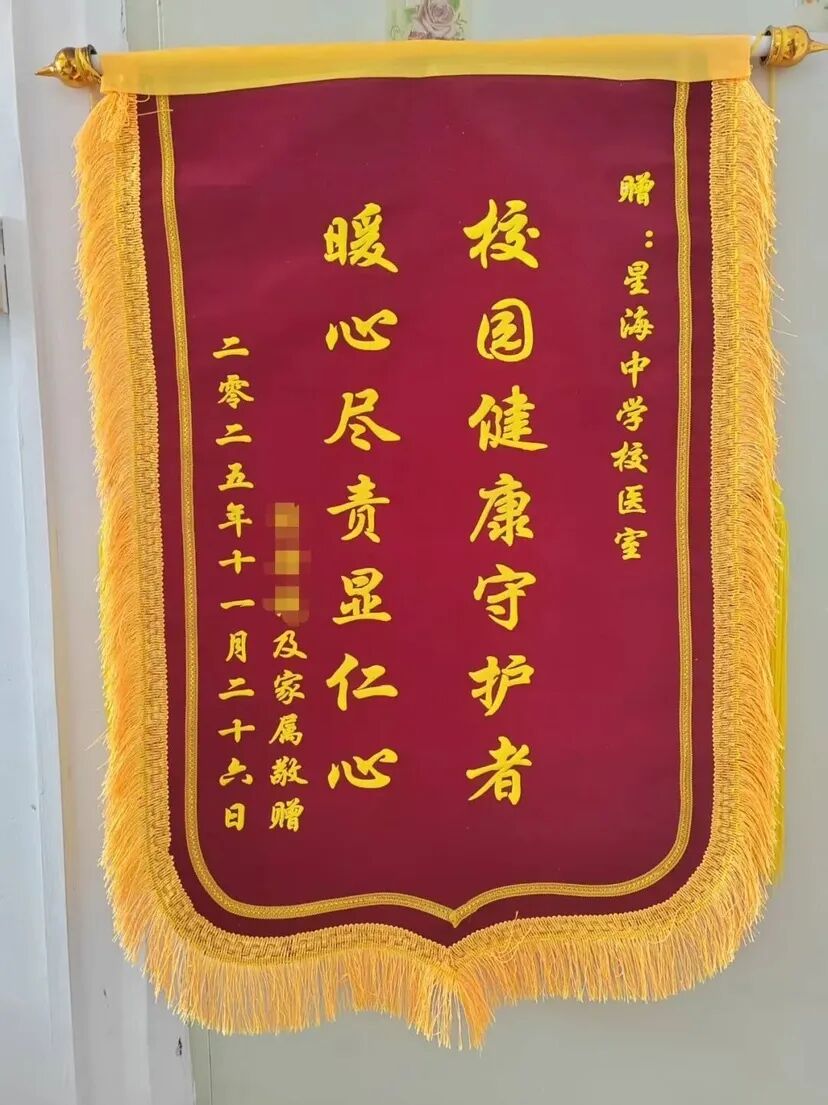 “把孩子交给学校,我们安心!”近日,广州市番禺区星海中学一位学生家长特地将一面写着“校园健康守护者,暖心尽责显仁心”的锦旗送到学校校医室,这面金灿灿的锦旗背后是一场惊心动魄的生命救援。