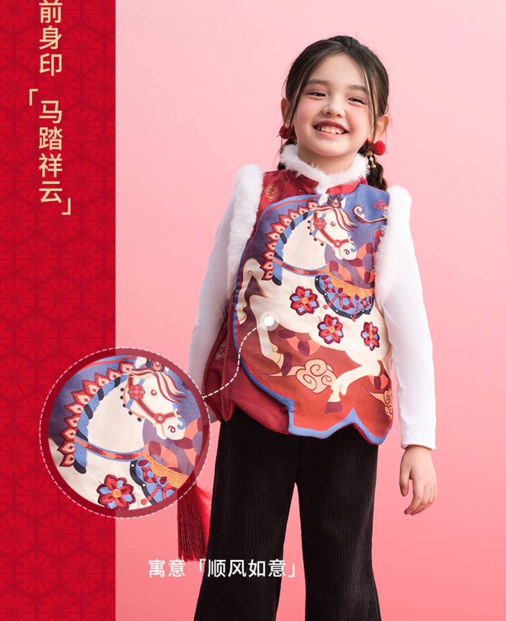 “马上有福”唐装,以经典中式廓形承载美好寓意。