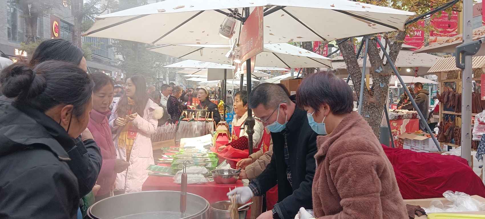 12月19日,以“嗨购天府 寻味乡村”为主题的2025年“天府乡村”公益品牌产品年货大集,在成都市铁像寺水街及多家益民菜市门店同步火热开市。