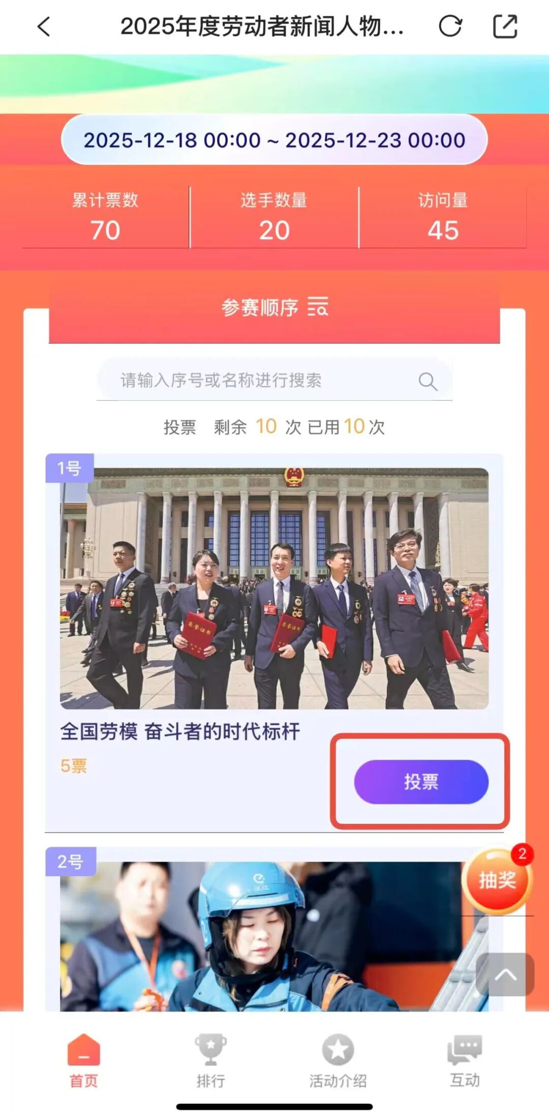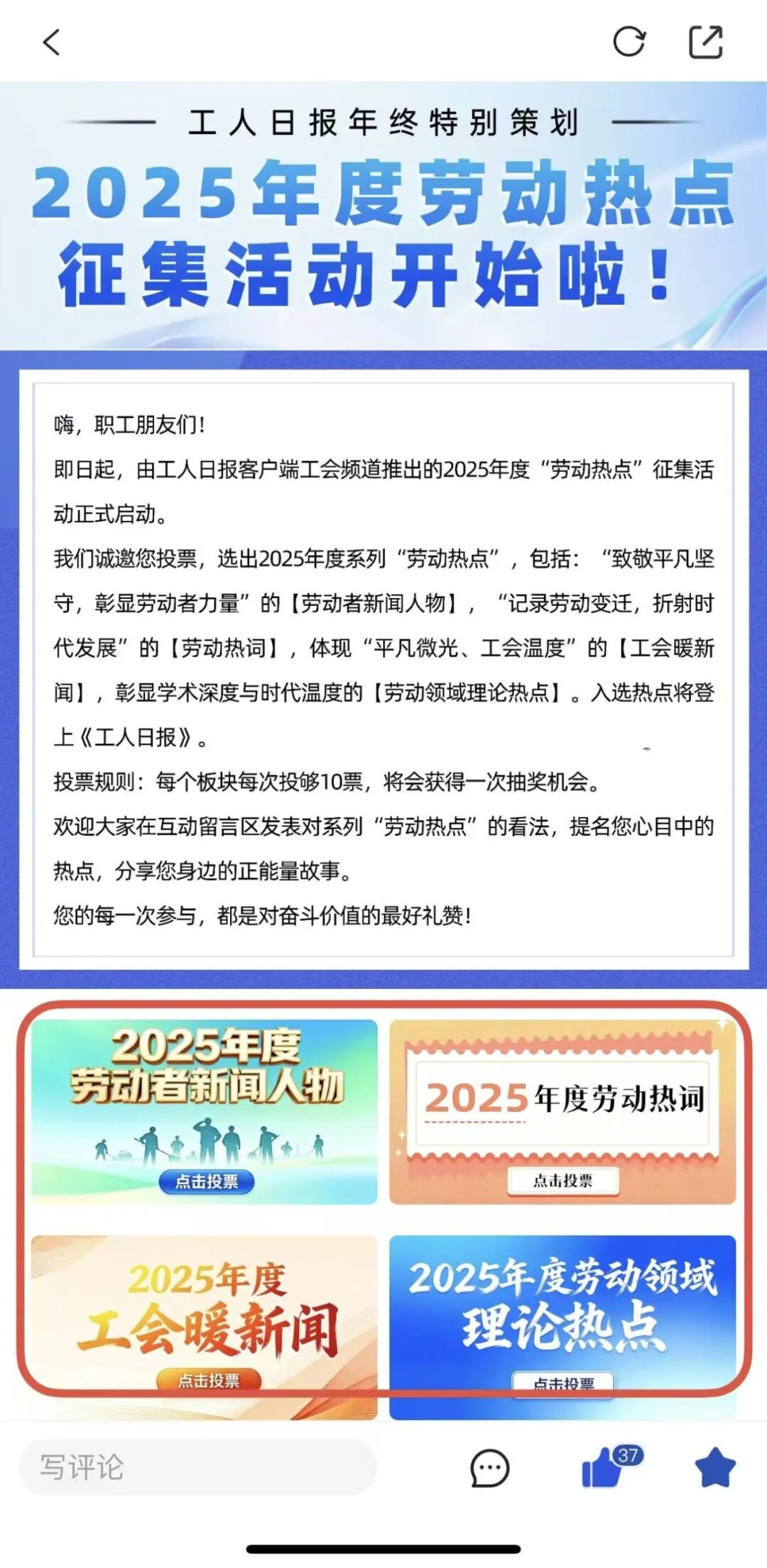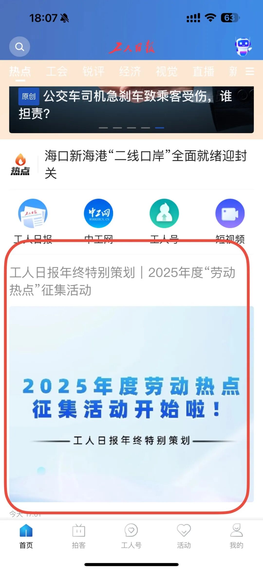 2、打开首页即可找到2025年度“劳动热点”征集活动。