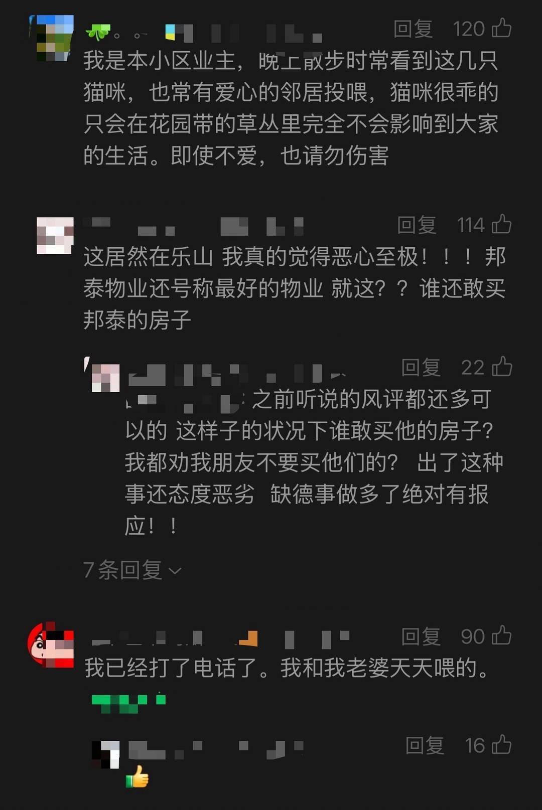 连日来,四川乐山邦泰国际社区小区物业用抄网捕捉流浪猫,其间一幼猫被打死的消息引发广泛争议,网友普遍质疑邦泰物业的流浪猫治理方式。12月17日,当地一流浪动物救助保护中心发文谴责:“棍棒之下无治理”,要求物业停止攻击流浪动物。小区居民也在和物业沟通的同时,自发领养余下的流浪猫。