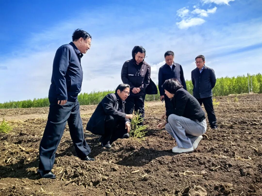 内蒙古自治区检察院党组书记、检察长李永君(左二)赴呼伦贝尔市检察机关调研。图为李永君在阿荣旗实地查看林草恢复情况。