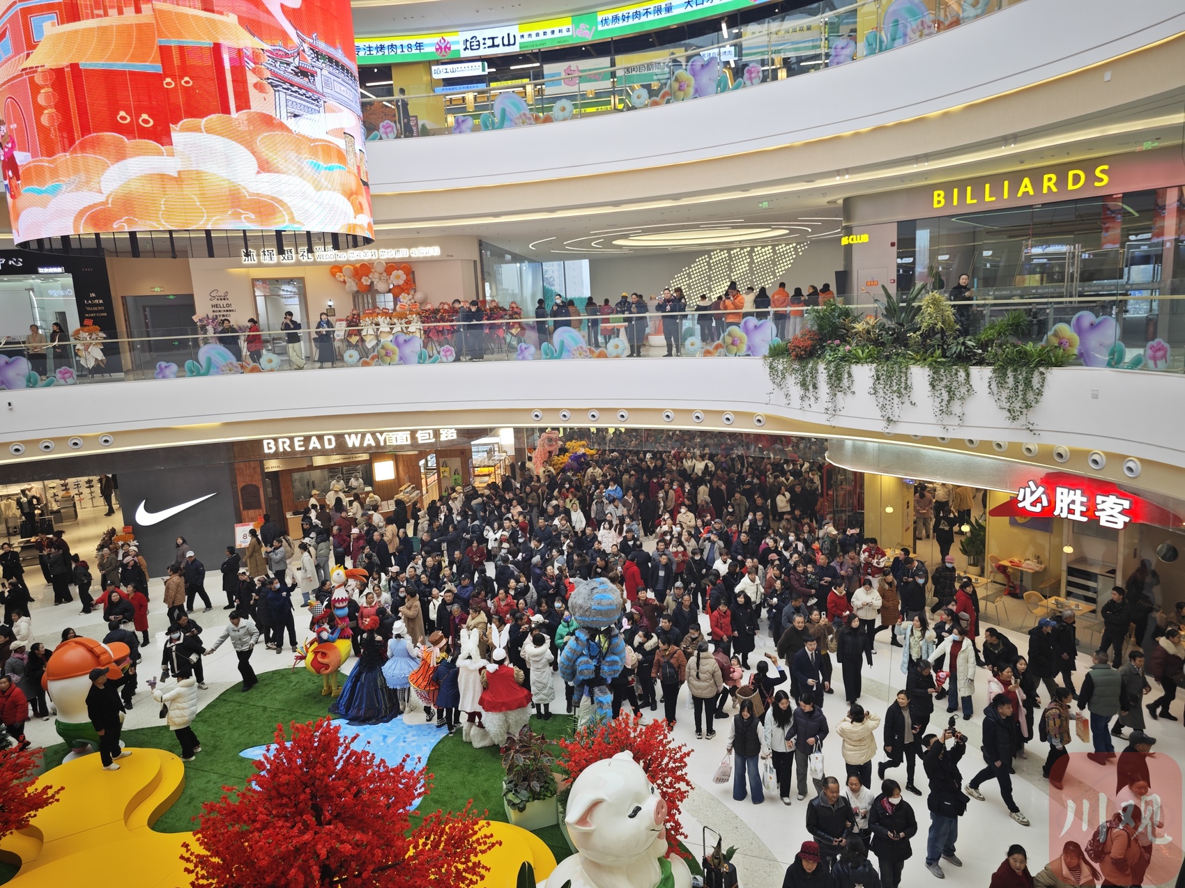 作为江安县着力打造的重要新消费场景,当天,成悦广场正式开门迎客,填补了县城现代商业综合体的空白,进一步丰富县域居民消费供给、提升消费能级。商场有超130个品牌入驻,围绕“年轻人的时尚社交空间”和“吃喝玩乐购齐备的遛娃圣地”两大核心定位,着力打造江安商业新地标。