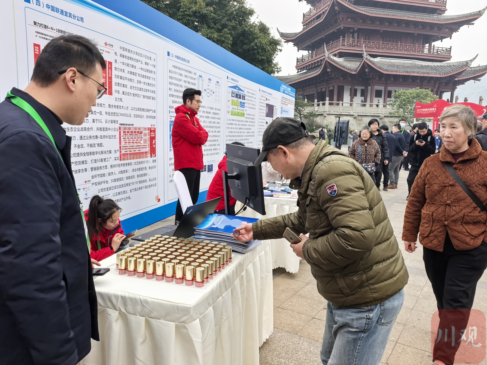 宜宾市数据局相关负责人介绍,这次与宜宾市酒业发展局共同在宜宾老城区最具人气的地标建筑合江门广场设立展区,目的是让市民游客在沉浸式体验酒文化的同时,近距离感受数字技术赋能传统产业的生动实践,希望以这场盛会为契机,促进酒产业与数字经济融合发展,推动宜宾白酒产业高质量发展。