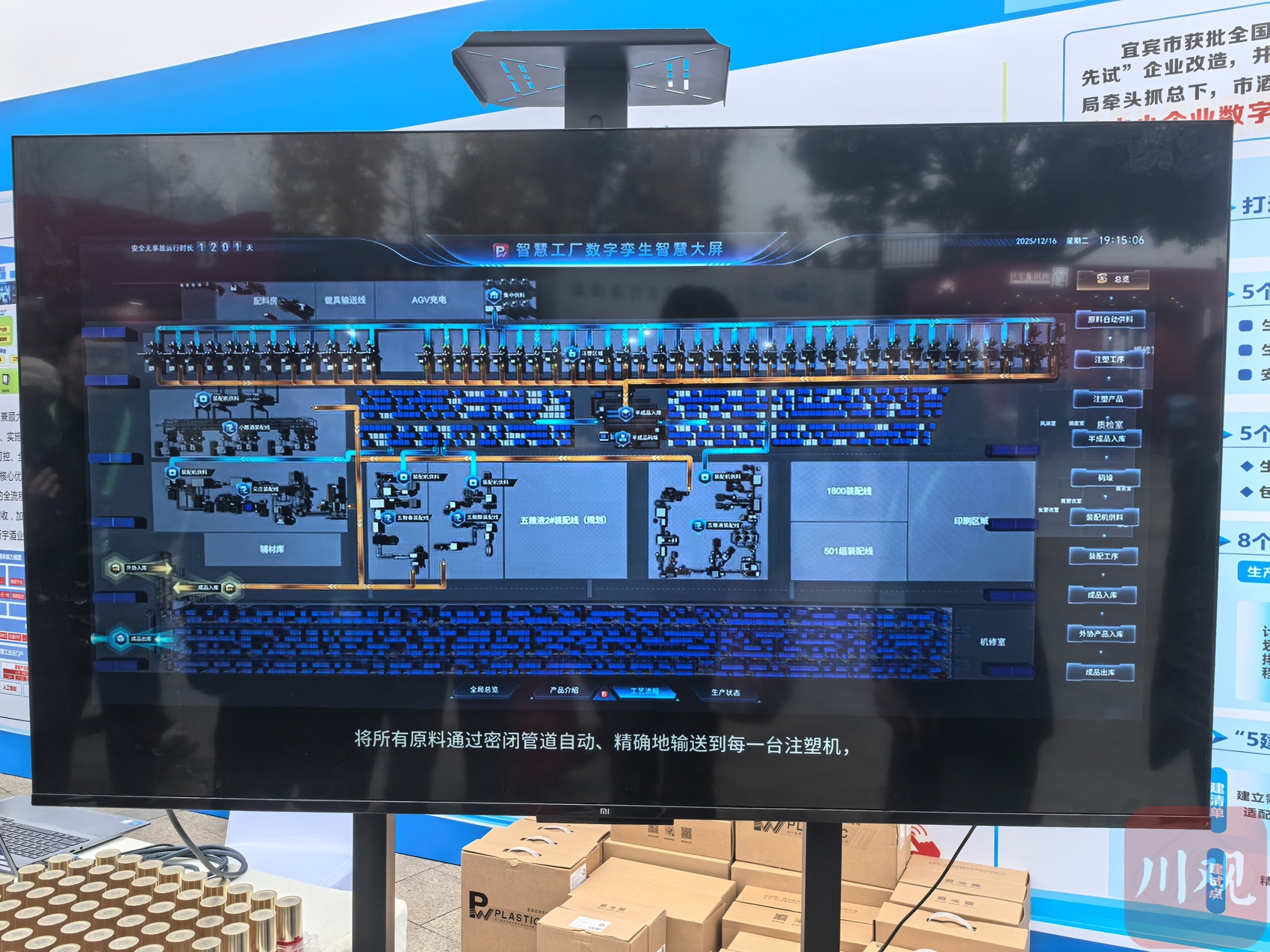 周茜介绍,比如在仓储环节,通过WMS系统(仓库管理系统)与视觉技术、码垛机械臂协同,可自动规划入库点位、记录库龄等,周转效率较传统人工台账模式提升40%,“公司为川红茶业、叙府酒业、郎酒、剑南春等市内外企业提供数字化服务。接下来计划向白酒行业中小企业提供覆盖包装材料全链条的数字化升级服务,助力产业链协同转型。”