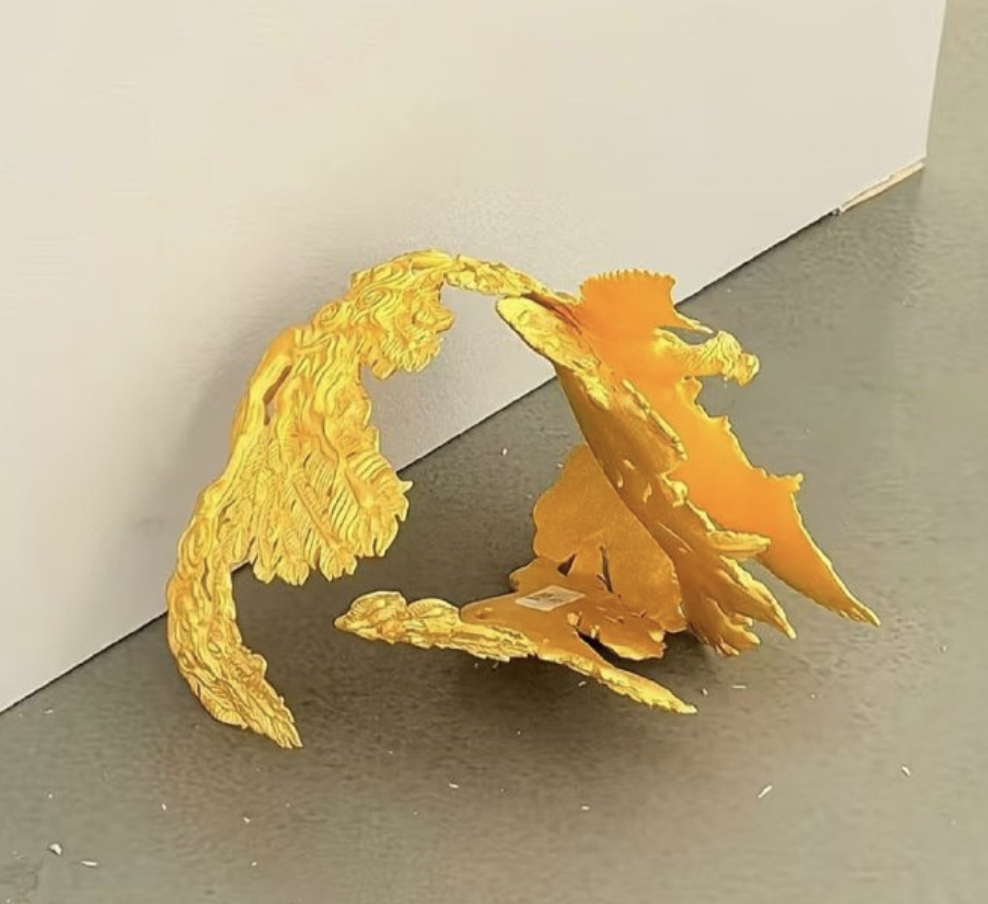 3. 参展受损作品,由特邀策展人/艺术家张先生本人将原计划置于卡槽式保护罩展柜的作品,改置于小型雕塑裸展台并增设4.29kg自重的亚克力防尘保护罩。