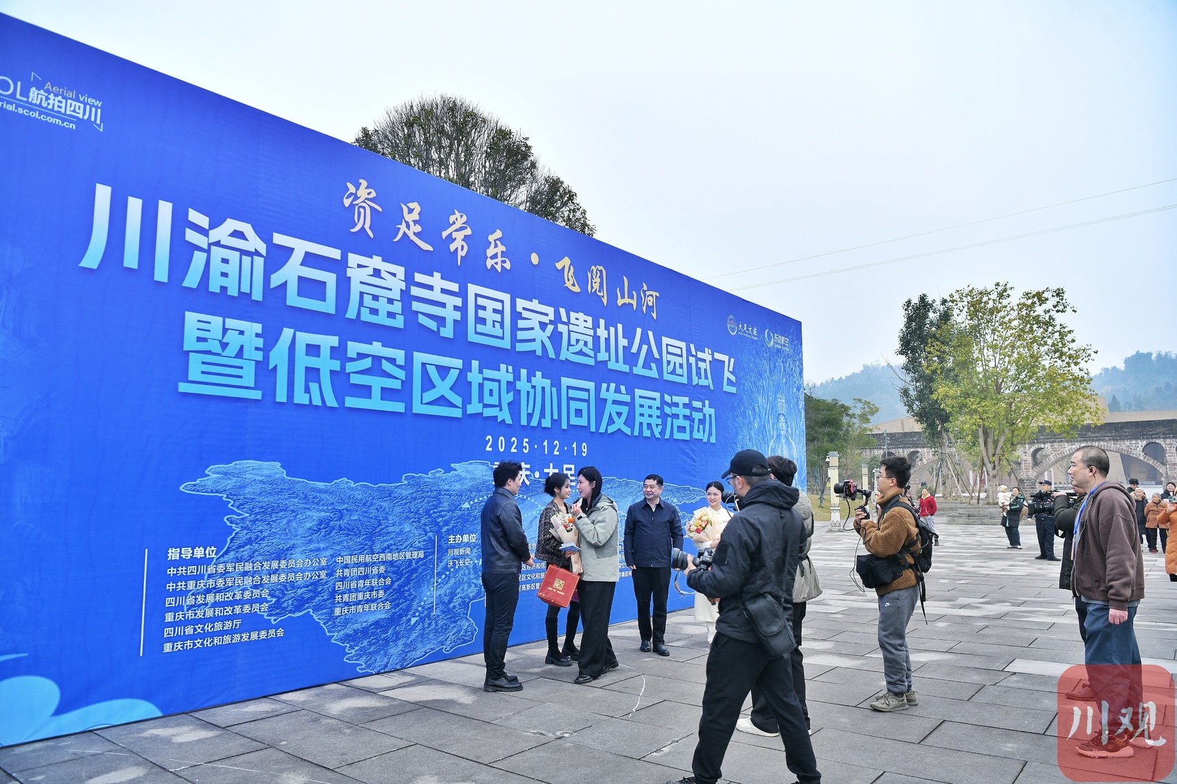 作为全国首个跨省域低空文旅协同项目——“巴蜀低空文旅走廊试飞活动”的第二站,本次试飞开辟了川渝石窟寺遗址国家公园的首条低空通道,为未来石窟主题游创新了更多玩法。