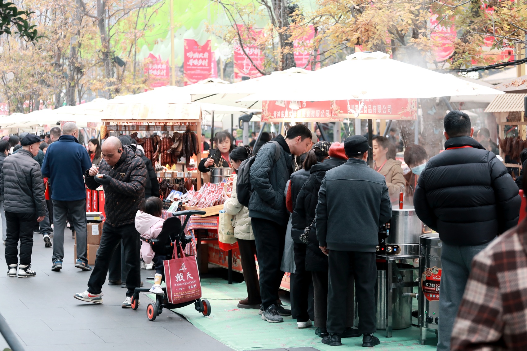 清甜的越西苹果、软糯的通江银耳、醇香的峨眉山茶、麻辣的自贡冷吃兔、甘甜的壤塘蜂蜜……12月19日,成都市铁像寺水街人头攒动、暖意融融,吆喝声与欢笑声交织成热闹的年节图景。来自全省21个市(州)的167家优质企业,携25个品类700余种特色农副产品在这里共同勾勒出一幅舌尖上的天府年货地图。