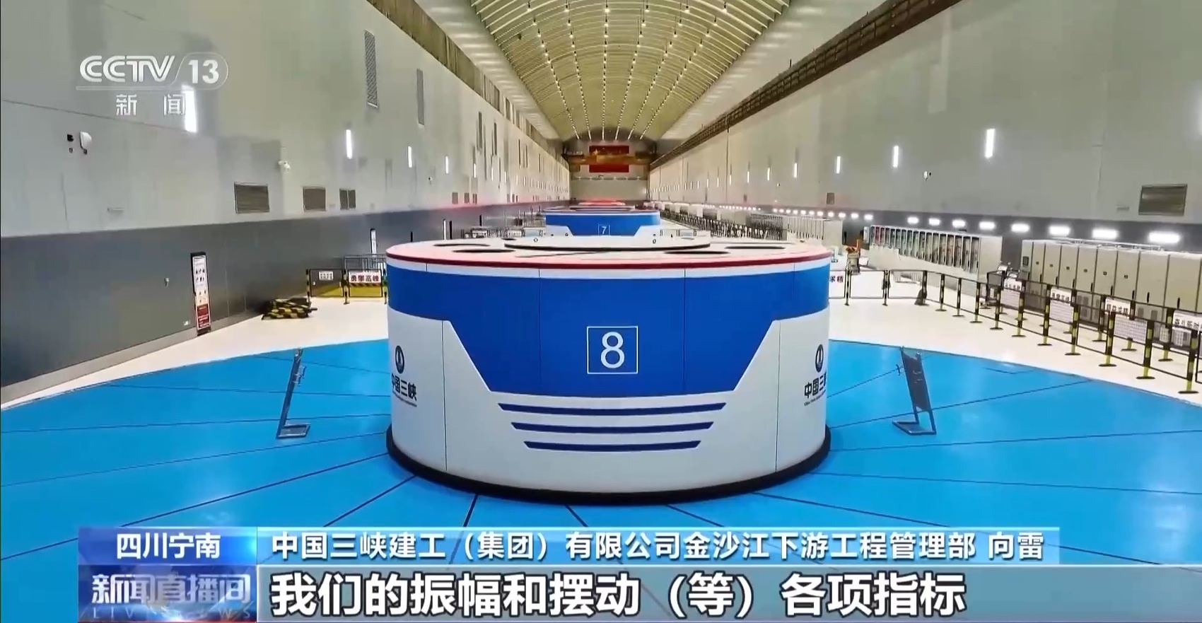 中国三峡建工(集团)有限公司金沙江下游工程管理部 向雷:从运行状况来看,我们的振幅和摆动等各项指标都高于精品工程标准,未出现运行故障。单台机组每转动一圈可以发出150度电,可满足一个普通家庭一个月的用量。