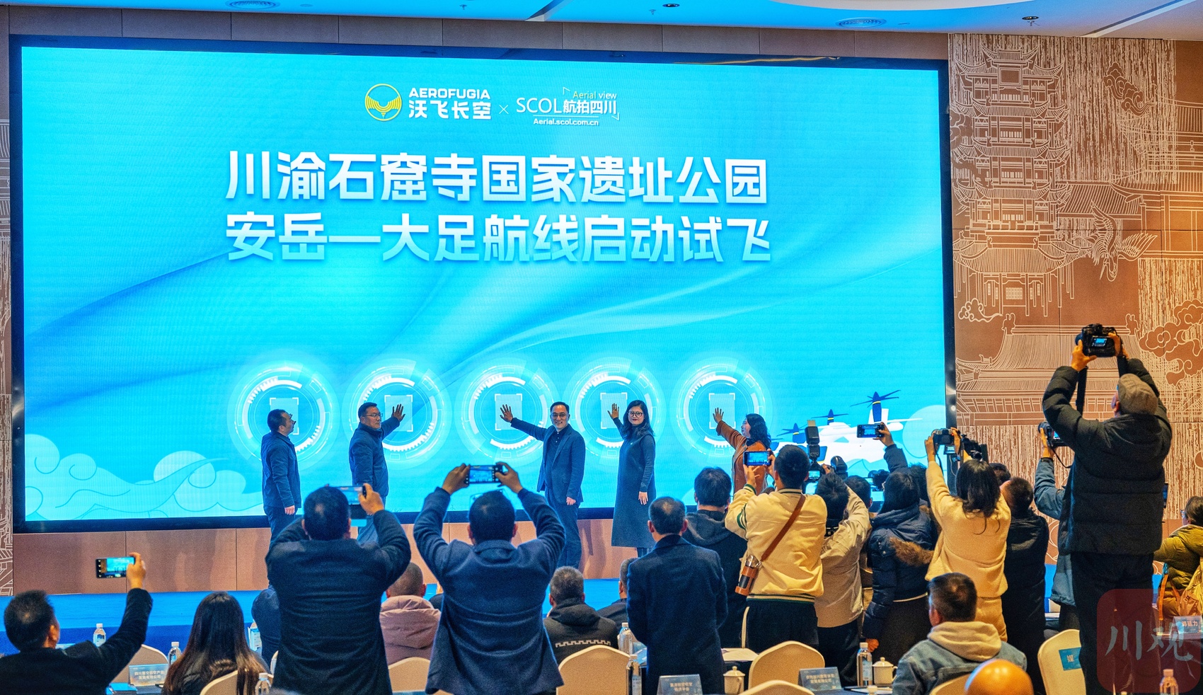 12月19日,川渝石窟寺国家遗址公园试飞暨低空区域协同发展活动在资阳安岳举行,标志着川渝首条跨省域石窟主题低空文旅航线正式试飞。