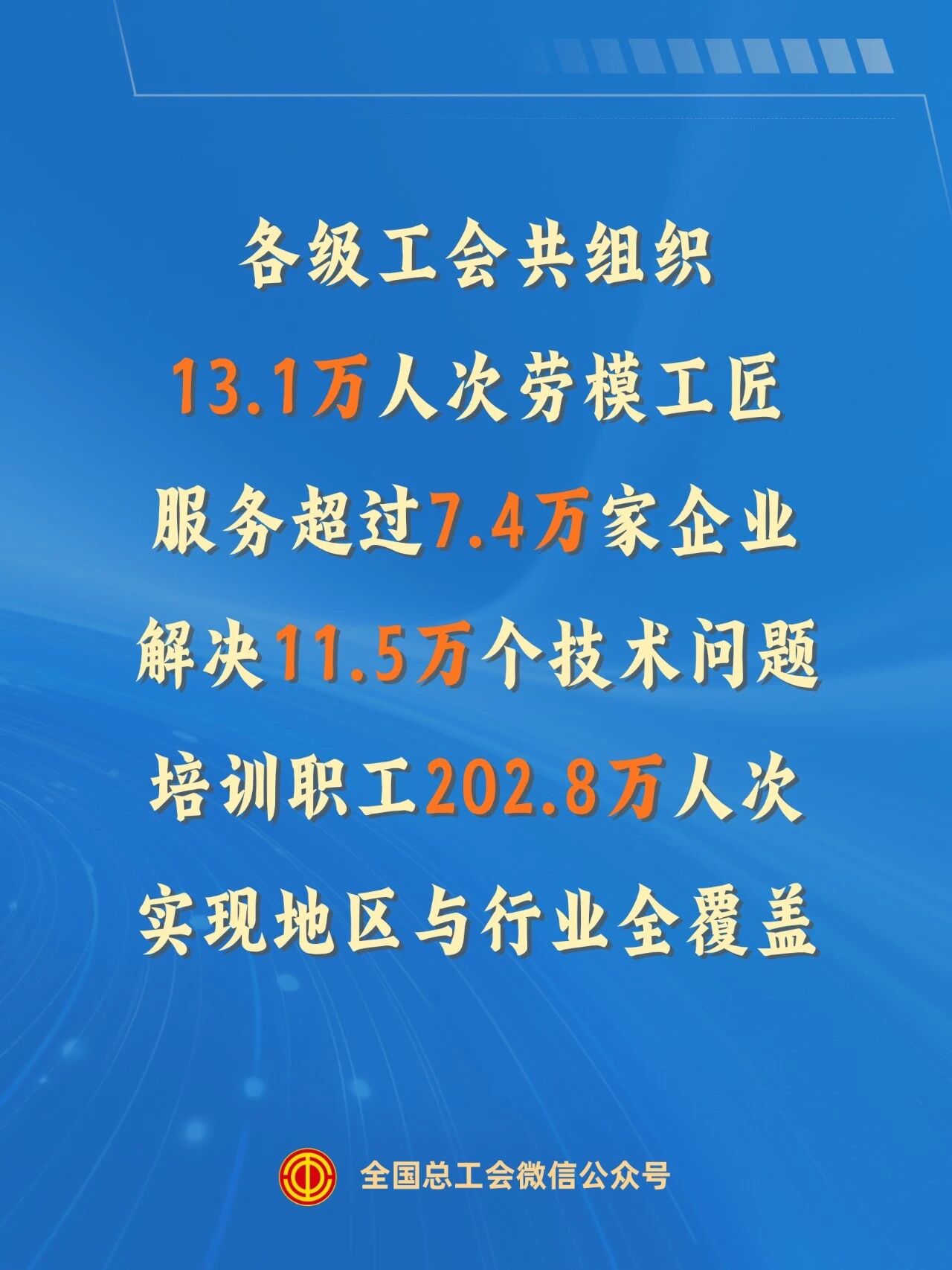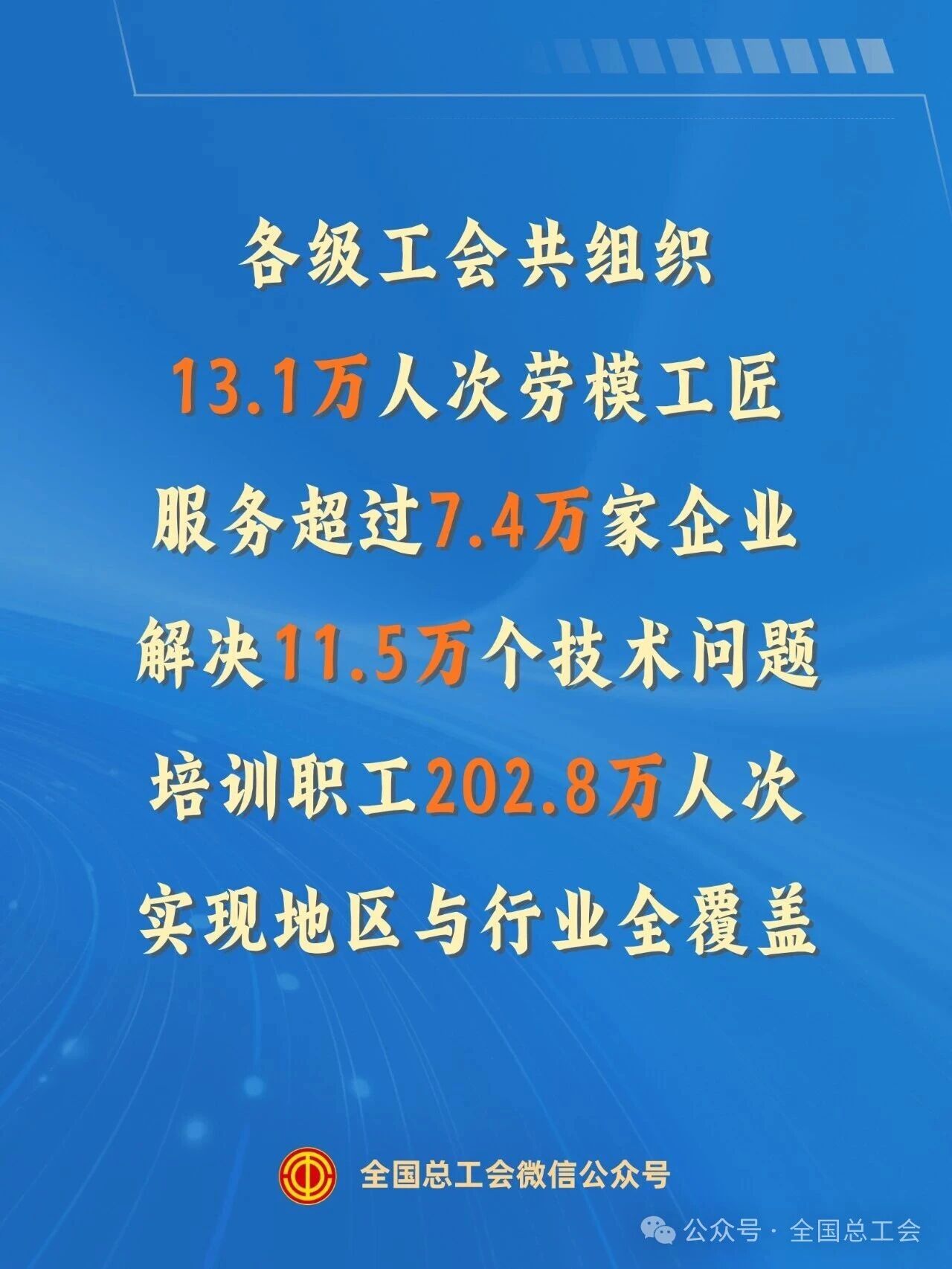 ✔️各级工会共组织13.1万人次劳模工匠服务超过7.4万家企业