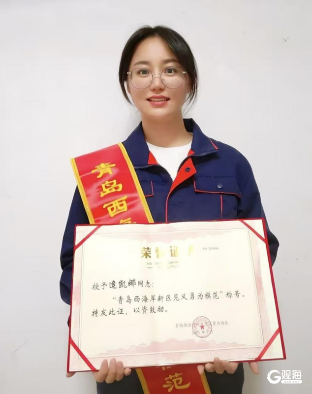 逄凯娜获得“西海岸新区见义勇为模范”称号