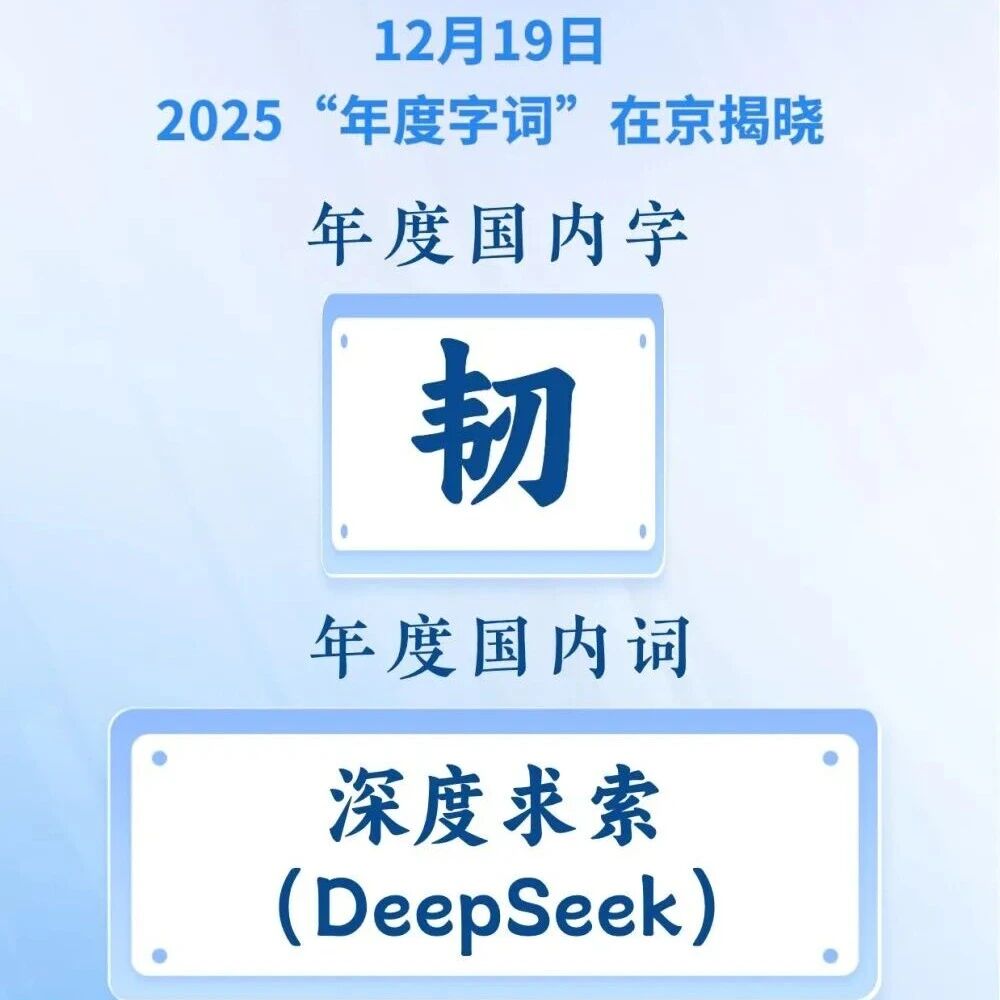 由国家语言资源监测与研究中心、商务印书馆、新华网联合主办的“汉语盘点2025”活动,12月19日在京揭晓2025“年度字词”。经网友推荐、语料库大数据提取和专家评议,2025年度国内字为“韧”,年度国内词为“深度求索(DeepSeek)”。