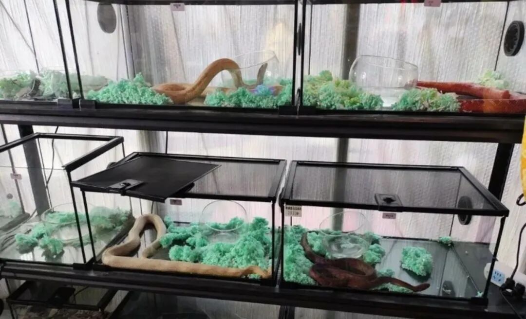 随着“异宠”市场的兴起,其背后完整的产业链也正悄然成型。肥西县的王甜恬正小心翼翼地检查“暴风雪”品系玉米蛇的孵化情况。“我们主要经营自家繁育的异宠,通过电商平台和兴趣社群进行销售。”她介绍,异宠价格随生长阶段显著攀升,幼体单价约千元,而品相优良的成年玉米蛇可达2000至3000元,稀有成年蜥蜴更可超过3000元。“今年我们的繁育规模扩大了近三倍,仍供不应求,市场热度远超预期。”王甜恬说。