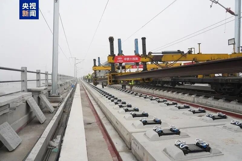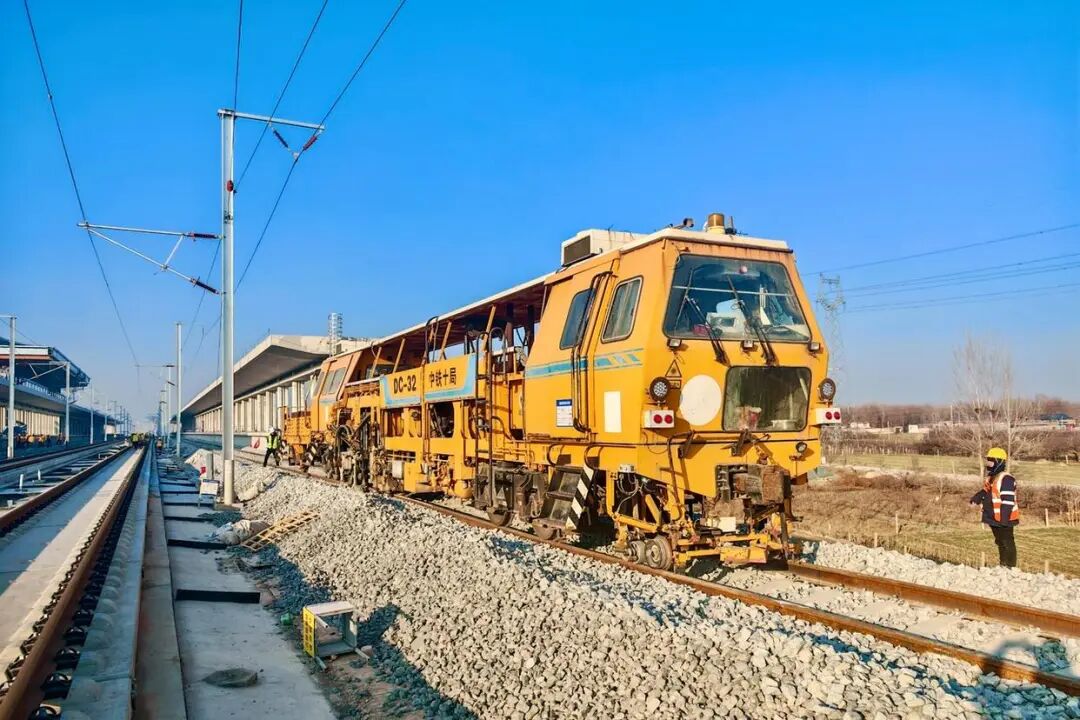 京港高铁雄商段铺轨施工创新采用了“双机协同”作业模式,即在上下行线路同时投入铺轨机组开展作业,形成了高效流水化作业链条,铺轨效率较以往提升40%至50%。