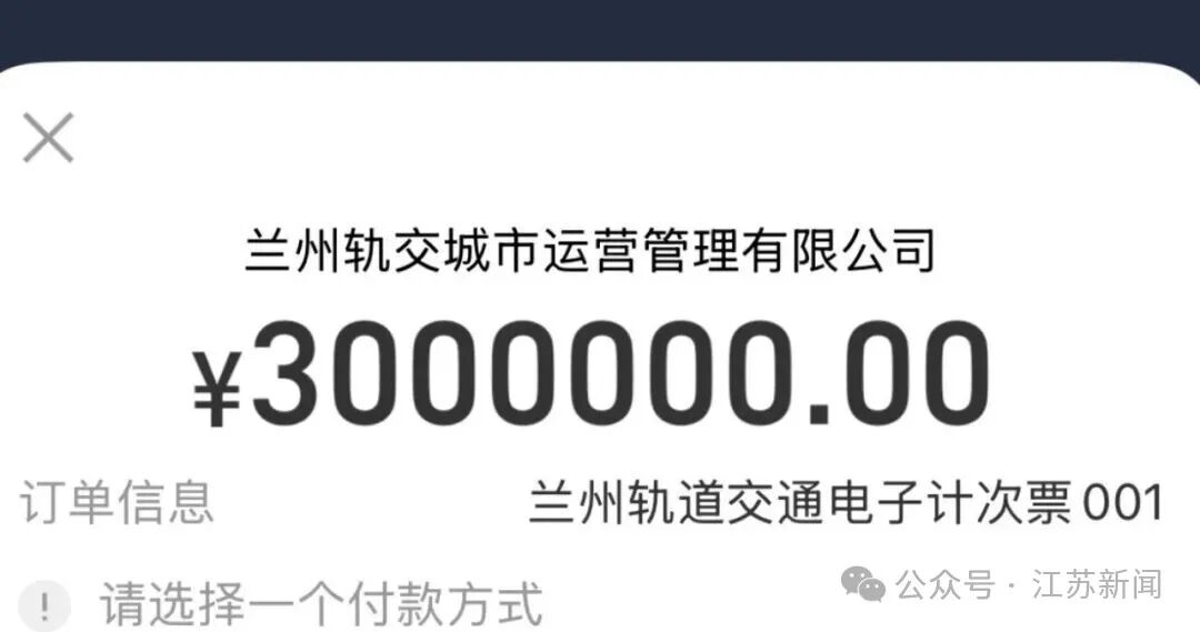 12月18日晚,甘肃兰州。多位市民反映,购买原价300元的兰州轨道交通电子计次票,付款时变成3万元,甚至部分用户付款变成300万元。