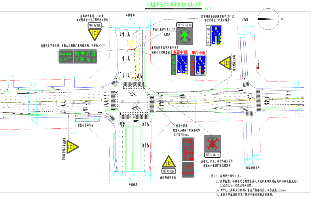 改造方案:设置潮汐车道,配套完善相关交通信号、标志标线等设施。