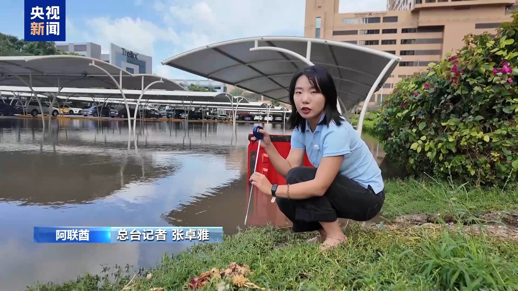 总台记者 张卓雅:在经过三个小时的抽水作业之后,我们看到这个停车场的积水深度还是能够达到35厘米。