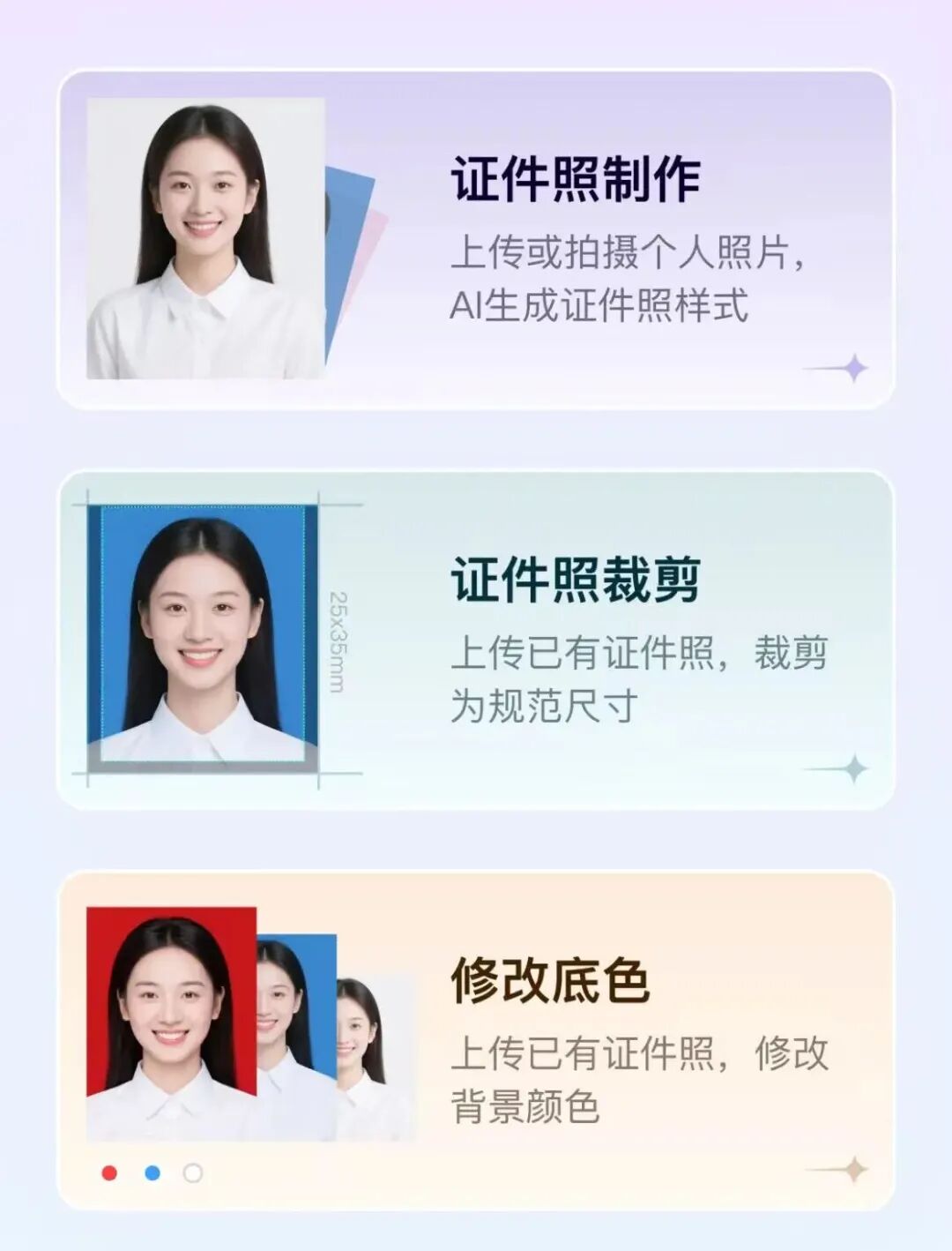 证件照制作:一键生成上传一张正面人像,自由选择背景颜色、服装、尺寸。