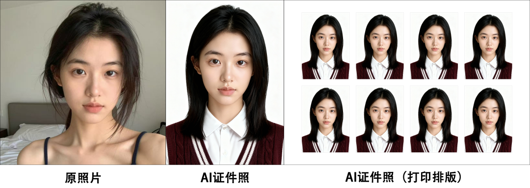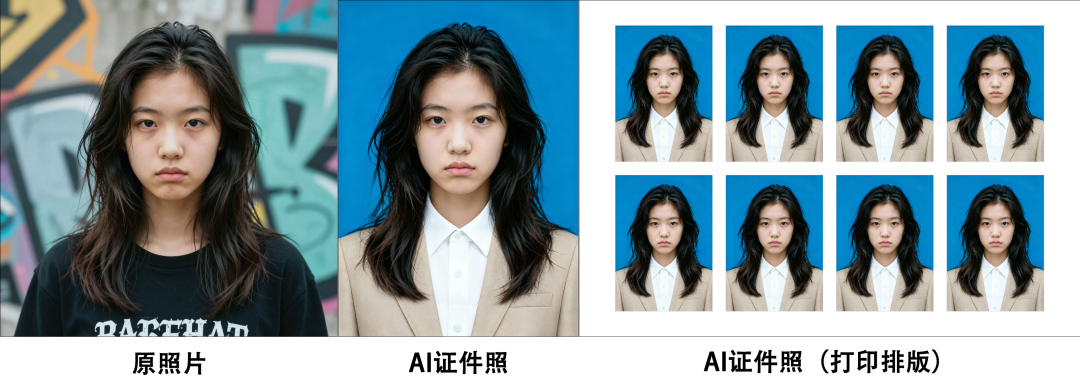 AI智能美颜并自动排版,系统会自动生成一张适用于6寸相纸的电子排版图(含多张证件照)。
