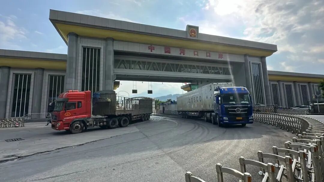 货车驶入河口口岸。图源:“国门河口”微信公众号