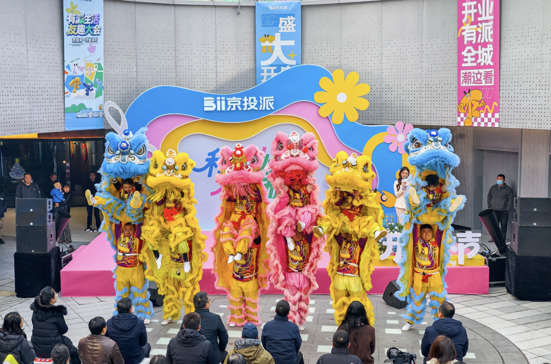 三元桥站,是地铁10号线、12号线与首都机场线的三线交汇点,每日汇聚大量通勤与往来乘客。19日上午,许多进出站的乘客都被下沉广场上热闹的舞狮表演所吸引。围绕着广场,多家餐饮商铺开张,提供各类美食的市集摊位也汇聚着人气。