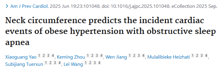 研究者表示,颈围可能成为高血压患者预测心血管事件发生风险的一个标志物。本研究中所有高血压患者都接受了干预,包括生活方式改善,服用降压药、降糖药、降脂药,进行抗血小板治疗等。这些治疗降低了心血管事件发生率,并在一定程度上削弱了颈围增加与心血管事件的关联。
