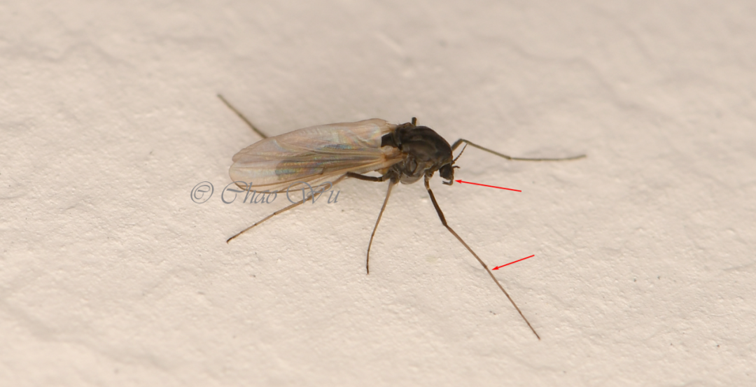 雌性的摇蚊,看起来和吸血的蚊子有些相似,但摇蚊前足往往较长,也不会翘着后腿儿。细看,它们也没有针状的“嘴”。摄影:吴超