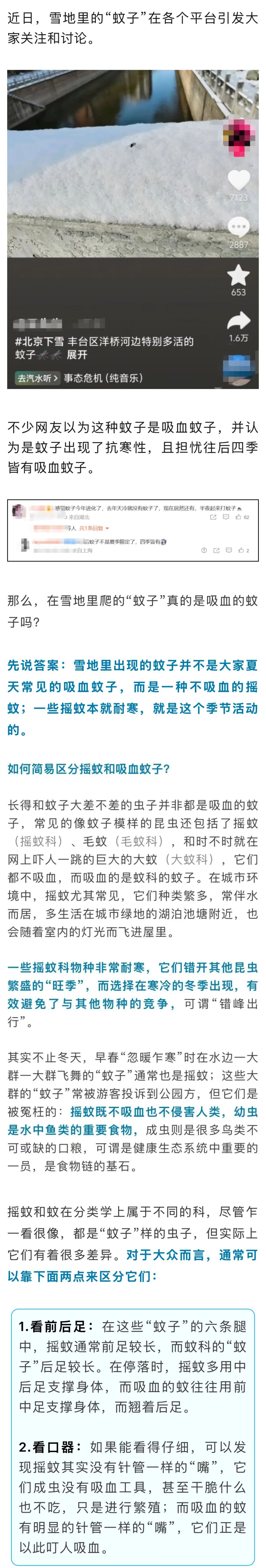 也不是的。如前文所说,很多昆虫本就是冬天活动的,它们有很强的耐寒能力。冬季其实不止有摇蚊活动,还有一些蛾子也会在这个季节出现,这是它们千万年来对环境的适应,而非突然才出现的。