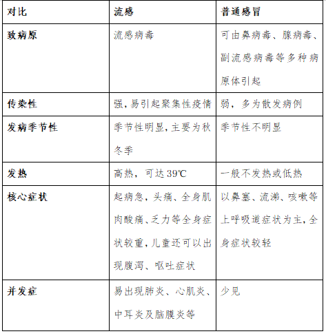 流感与普通感冒不同,常常急性起病,突发高热,体温可达到38℃以上、头痛、全身肌肉酸痛、乏力等全身症状较重,对于老人、儿童、孕妇及慢性病患者等高危人群,感染后可能引发肺炎、心肌炎等严重并发症,甚至死亡。