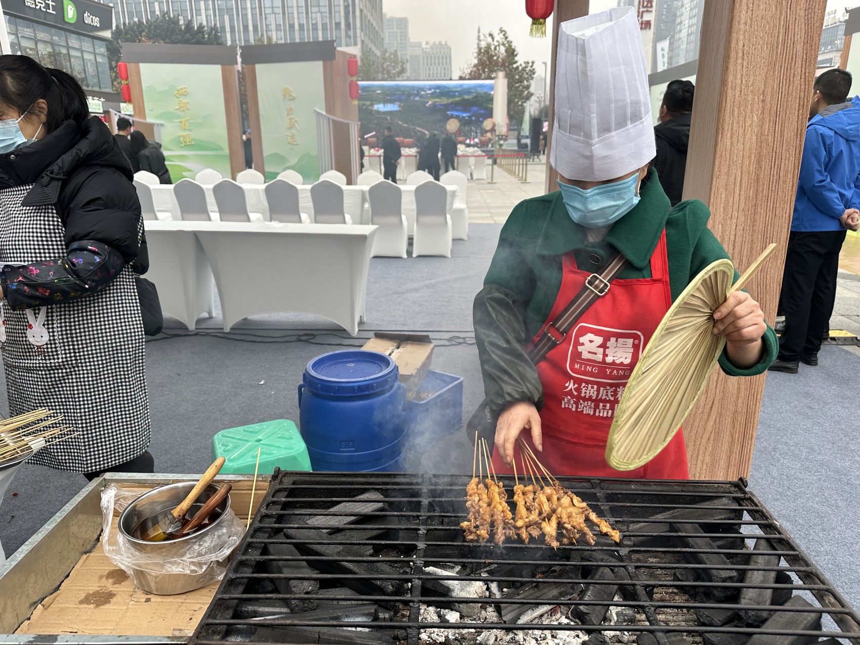 活动现场,升腾的热气与浓郁的肉香交织。在威远农特产品集市与羊肉汤全产业链文化展区,生铁鼎锅中翻滚的羊汤咕嘟作响,羊肉串、无花果、花生糖等特色产品一字排开,引得市民争相品尝。“旁边的羊肉汤闻起来鲜而不膻,这个现烤的羊肉串配着本地辣椒更是太绝了!”市民王阿姨端着碗连连称赞。