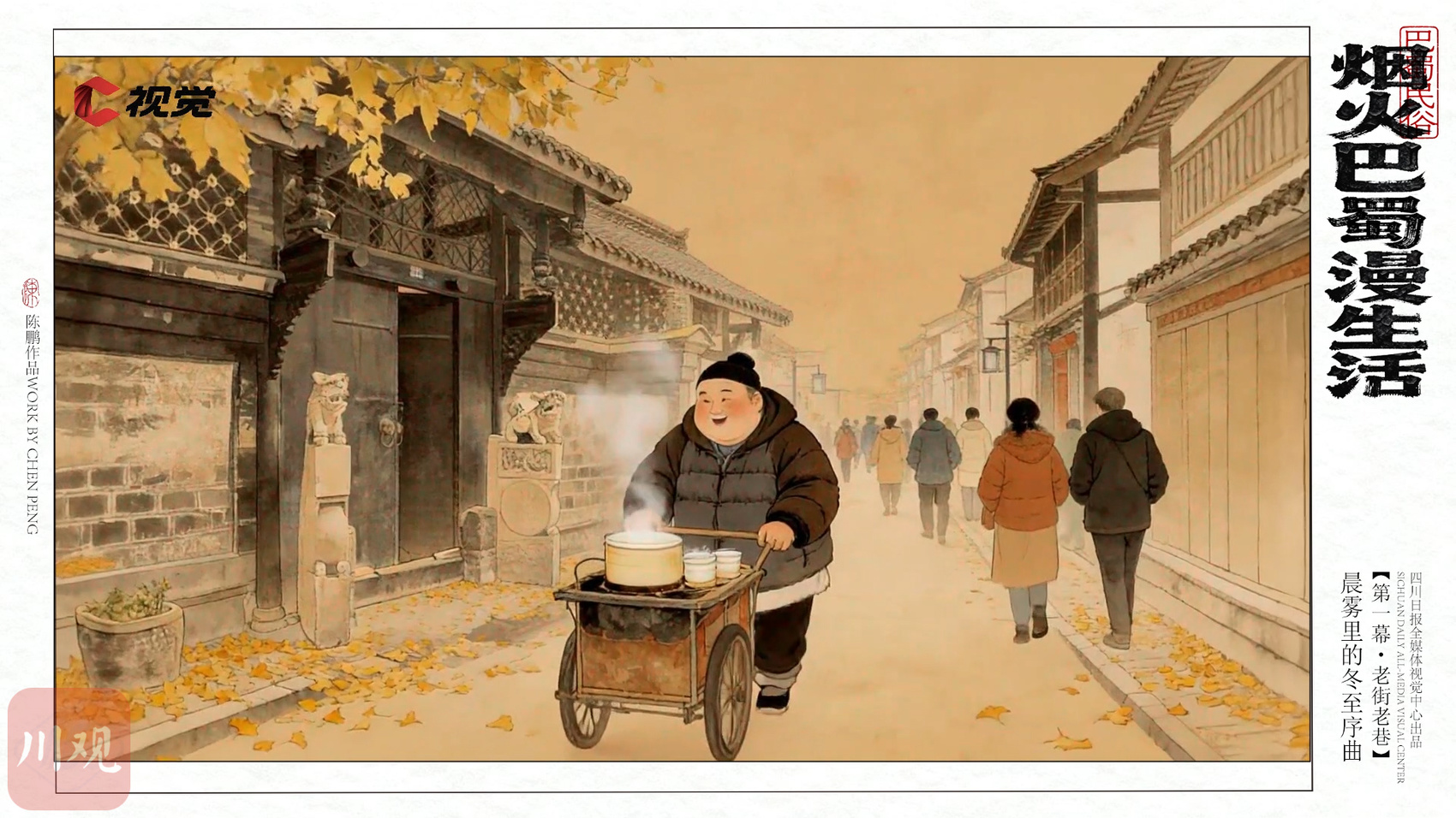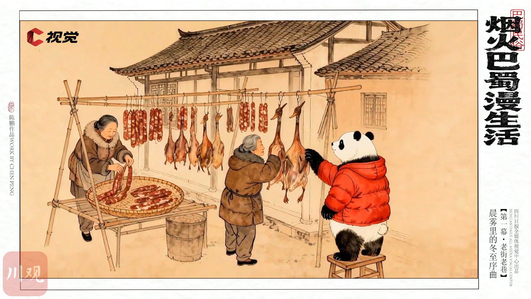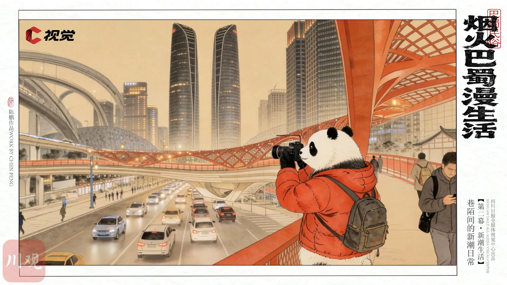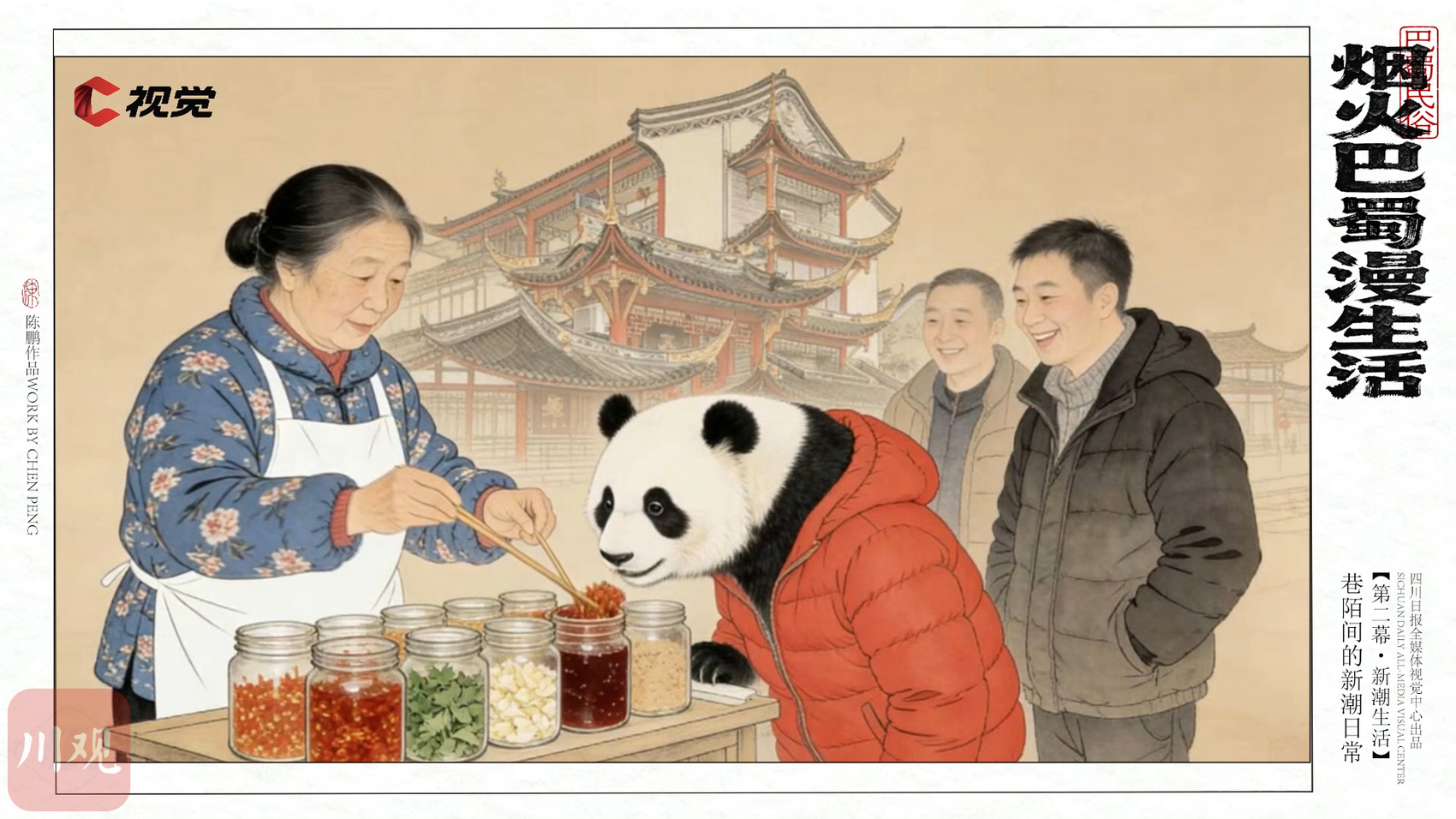 川观新闻动画师诚意邀请你,跟随AI动画短剧里的熊猫“滚滚”漫步成都街巷,沉浸式细品冬日里的市井烟火与闲适安逸。