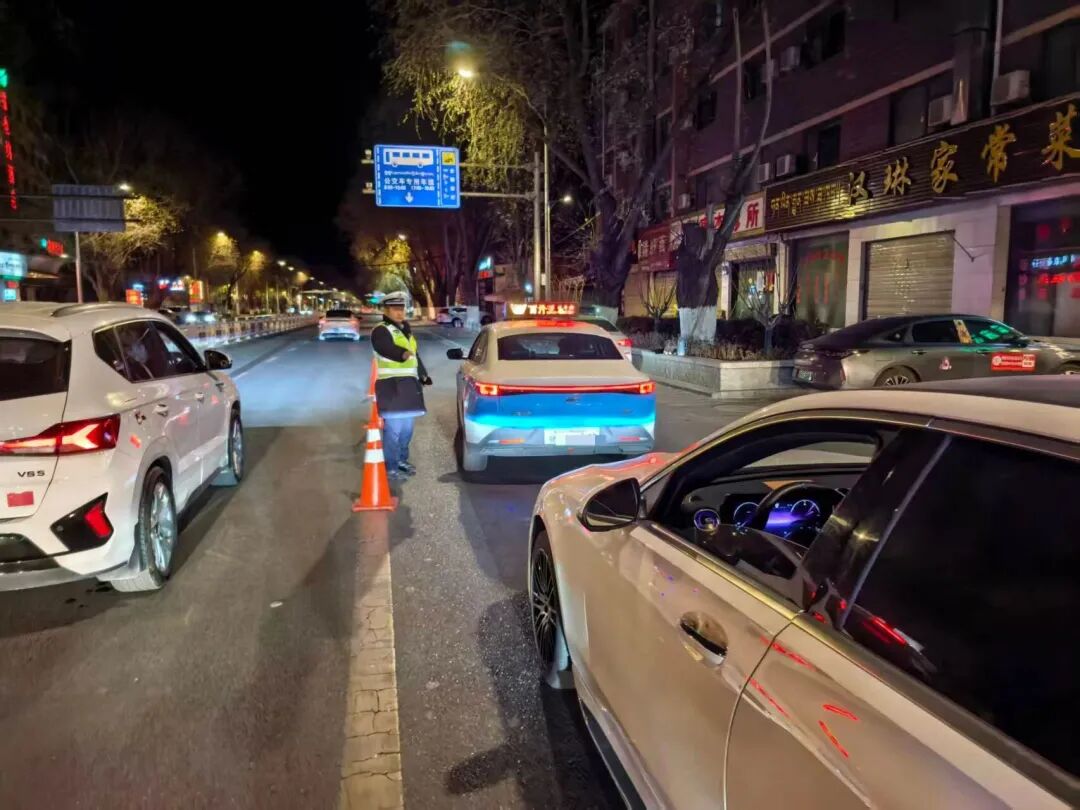 12月17日02:00,城北大队统筹推进北京西路、曲尼路等路段的整治行动,通过大数据研判酒驾高发时段,实施错峰勤务。在各检查点,民警采用酒精检测仪等执法装备,对每一辆过往车辆细致排查,同步查处无证驾驶、不系安全带等交通违法行为。